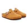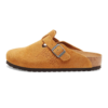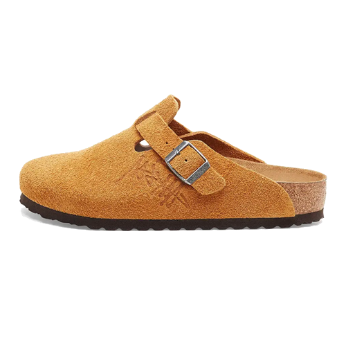 Introducing the Stüssy x Birkenstock Boston Caramel Clog, a harmonious fusion of streetwear flair and timeless comfort. This collaboration reimagines Birkenstock’s iconic Boston silhouette through Stüssy’s distinctive lens, resulting in a versatile and stylish clog suitable for any season. Crafted from premium suede leather, the upper boasts a rich caramel hue that exudes warmth and sophistication. The debossed Stüssy logo on the exterior adds a subtle yet impactful branding touch, while the dark brown suede lining ensures a luxurious feel against the skin. An adjustable strap with a matching matte buckle allows for a personalized fit, enhancing both comfort and style.