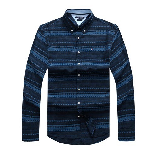This is Tommy Hilfiger Navy-Blue Stripe Oxford Shirt. This poplin shirt is crisp, soft, and irons in moments (making life a lot easier). A spring plaid print distinguishes it from your standard stripe or solid.