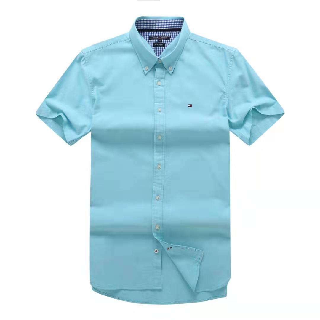 This is an all-time classic Tommy Hilfiger Short-sleeve Oxford Blue Shirt. This poplin shirt is crisp, soft, and irons in a jiffy (making life a lot easier). A spring plaid print distinguishes it from your standard stripe or solid.