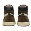 Expressing the tones associated with La Flame’s signature aesthetic, the upper on the Travis Scott x Air Jordan 1 “Cactus Jack” features a mix of brown nubuck and white leather accented by an interesting backward Swoosh design. The upper also comes complete with a hidden stash pocket at the stitched ankle collar. Cactus Jack heel embossing, retro Nike Air tongue tags and mismatched insoles serve as additional branding details. Elevating the shoe is an off white midsole and dark brown rubber outsole.