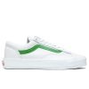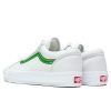 The Vans OG Style 36 LX in green/white was inspired by the first sidestripe style which Vans made in 1977. The shoe features a smooth white leather upper with a red leather side stripe on top of a vulcanized rubber. Also, a cupsole with the Vans signature gum rubber Waffle outsole that is built to the exact original specs can be seen on the sole. OG features include high sidewalls that are hand-wrapped with cotton inside the rubber, buffed leather side stripe, leather lining, padded collar and red “Vans Off The Wall” logo label on the heel.